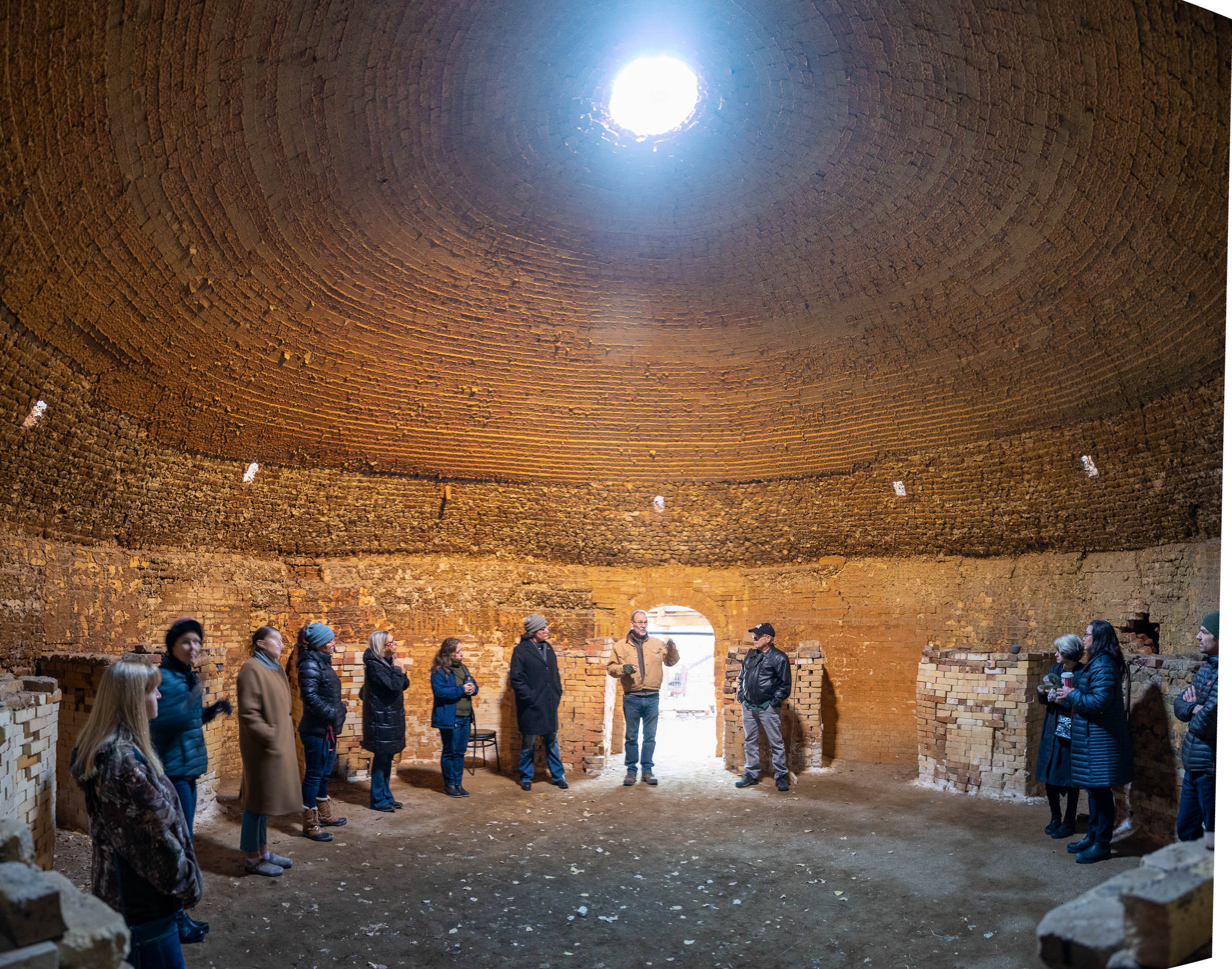 Inside an acoustically-perfect beehive kiln, now used for occasional music performances.